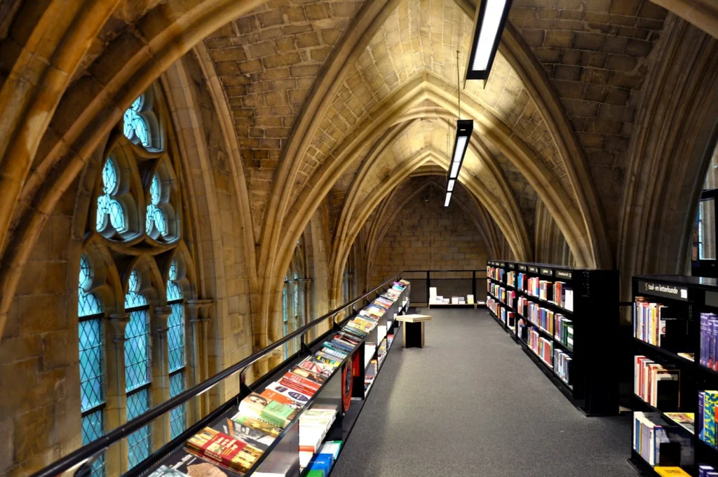A Holanda leva o fenômeno ainda mais longe. Em Maastricht, a igreja dominicana do século XI abriga hoje uma das livrarias mais famosas do mundo, a Selexyz Dominicanen. No local onde antes estava o altar, há agora uma cafeteria em formato de cruz.